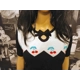 Here we have a beautiful soft knit cherry top. Extending to just below the waist and featuring a cool half sleeve design in black and white soft knit yarn. The front and back are decorated with cherry motifs and features a decorative black bow at the front of the neck. Cherrytastic.